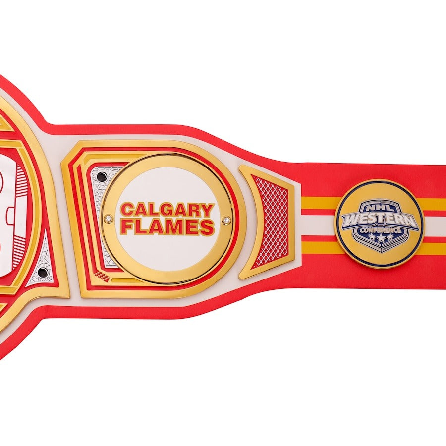 Feel the heat of the Saddledome with this Calgary Flames NHL Championship Belt. The iconic flaming “C” and vibrant red and gold colors capture the team’s burning passion and the unwavering support of its fans. This is more than just fan gear; it’s a symbol of your unyielding loyalty, a tribute to the Flames’ storied history, and a testament to the unyielding spirit of Calgary hockey. Let it ignite your passion and remind you of the roar of the ‘C of Red’ every time you wear it.