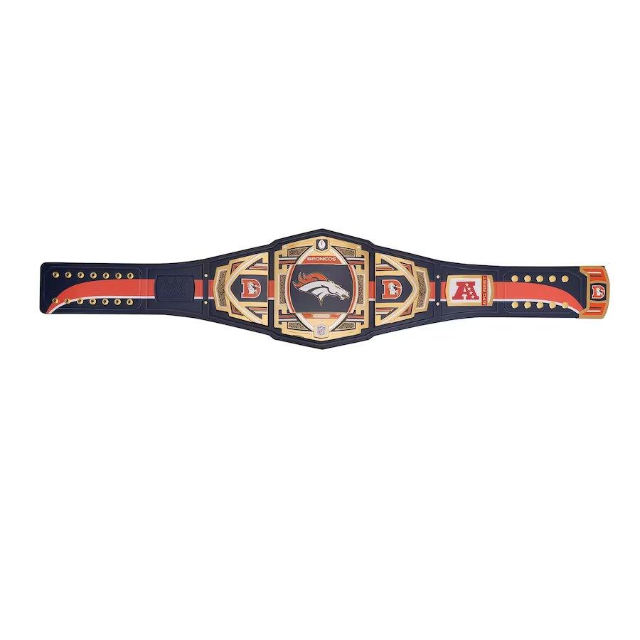 The Denver Broncos Championship Belt is a majestic tribute to a team that galvanizes its fans with spirit and determination. This belt encapsulates the essence of the Broncos’ journey, intertwining their rich history with the hopes and dreams of their passionate fanbase. Adorned with the Broncos’ iconic logo on a splendid centerpiece, the belt is infused with the team’s signature orange and blue, evoking the vibrant energy of game days at Mile High. Crafted with impeccable attention to detail and materials, it symbolizes the unbreakable bond between the team and its loyal supporters. The belt’s design reflects the highs and lows, the triumphs and trials, and the unyielding commitment to excellence. It’s more than an accessory; it’s a piece of the Broncos’ legacy, a physical manifestation of the cheers, the tears, and the shared belief in the magic of . Owning this belt means carrying a piece of Denver’s heart, a constant reminder of the exhilarating journey and the unflagging spirit of the Broncos.