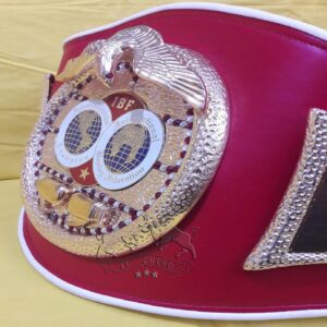 The IBF INTERNATIONAL BOXING FEDERATION is a high-quality replica of the real thing. This belt is the real deal, made from premium cowhide leather and with the finest quality paintwork. It’s the real deal. This belt is built to last and features the finest quality paintwork IBF INTERNATIONAL BOXING FEDERATION Title Belt with brass metal plating. Made by skilled craftsmen, it’s something you’ll be proud to own. Grab Your IBF Title Belt Today! IBF INTERNATIONAL BOXING FEDERATION Title Belt Be an IBF Champion Today.
