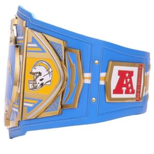 The Los Angeles Chargers is a stunning emblem of determination and passion, exquisitely capturing the spirit of a team as electrifying as the city it represents. Adorned with the Chargers’ iconic lightning bolt, this belt radiates the energy and excitement that the team brings to the field. It’s not just an accessory; it’s a celebration of every heart-stopping play and each moment of glory that has defined the Chargers. Crafted with meticulous attention to detail, the vibrant blue and gold hues reflect the team’s dynamic presence. This belt is an emotional journey for the fans, a reminder of the shared thrills and unbreakable bond within the Chargers community. It represents more than victories; it symbolizes the resilience, the fight, and the undying hope that pulses through the heart of every Chargers supporter. Owning this belt is like holding a piece of Los Angeles’ bold and spirited soul, a treasure for those who live and breathe Chargers football.