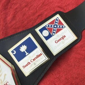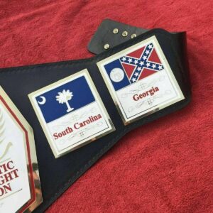 Get your hands on the MID ATLANTIC Heavyweight Championship Title Belt. This replica title belt is hand-crafted to replicate the same design and feel of the original. Made with single-layered brass and real cowhide leather, this belt will make you feel like a champion! The finest quality paint work on plates is done by experienced painters, making it an unbeatable accessory for any wrestling enthusiast.