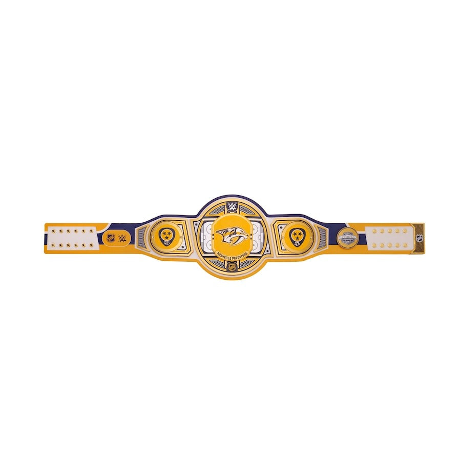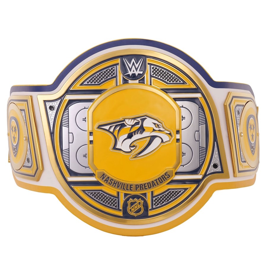 Feel the roar of the crowd at Bridgestone Arena with this Nashville Predators NHL Championship Belt. The fierce saber-toothed tiger emblem and bold gold, blue, and white colors capture the team’s tenacity and the unwavering passion of its fans. This Championship Belt isn’t just an accessory; it’s a symbol of your dedication to the Predators, a reminder of the thrilling moments on the ice, and a testament to your belief in the team’s bright future. Let it be a reminder of the energy that pulses through Smashville and the unwavering spirit that defines Predators hockey.