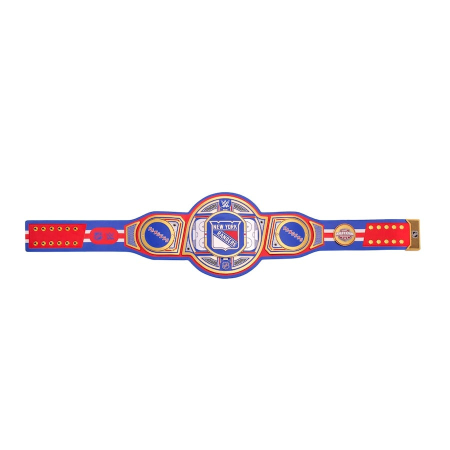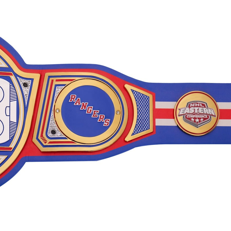 Embrace the legacy of the New York Rangers with this NHL Championship Belt. The iconic diagonal “RANGERS” lettering and bold red, white, and blue colors embody the team’s rich history, tradition, and the unwavering loyalty of their fans. This Championship Belt isn’t just an accessory; it’s a symbol of your connection to the Rangers’ dynasty, a reminder of the electrifying atmosphere at Madison Square Garden, and a tribute to the legends who have worn the blue shirt.