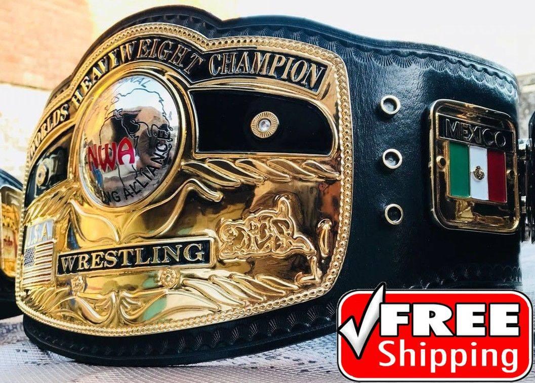 NWA Domed Globe is one of the most prestigious belts ever introduced by a wrestling promotion. The history of this championship belt is quite old and from the 1980s. Ric Flair was also a title holder for this championship belt, and today the latest winner for this championship belt is Nick Aldis. This championship belt is also known as “Ten Pounds Of Gold.” This championship belt is available in plain and laced leather straps making it more attractive. Real zinc metal is used for the plates of this belt, and 24k Gold Plating has been applied on these zinc plates. This is a beauty that no one can take their eyes off. Customized versions of these championship belts are available, and you can contact us for that version.