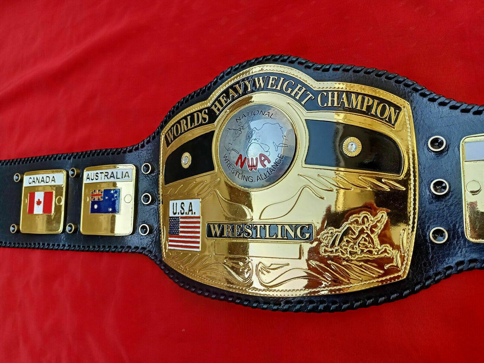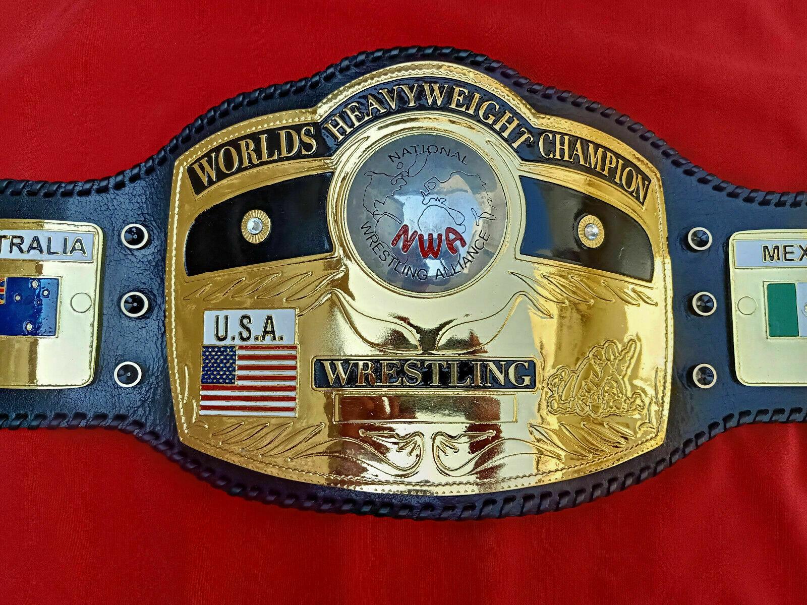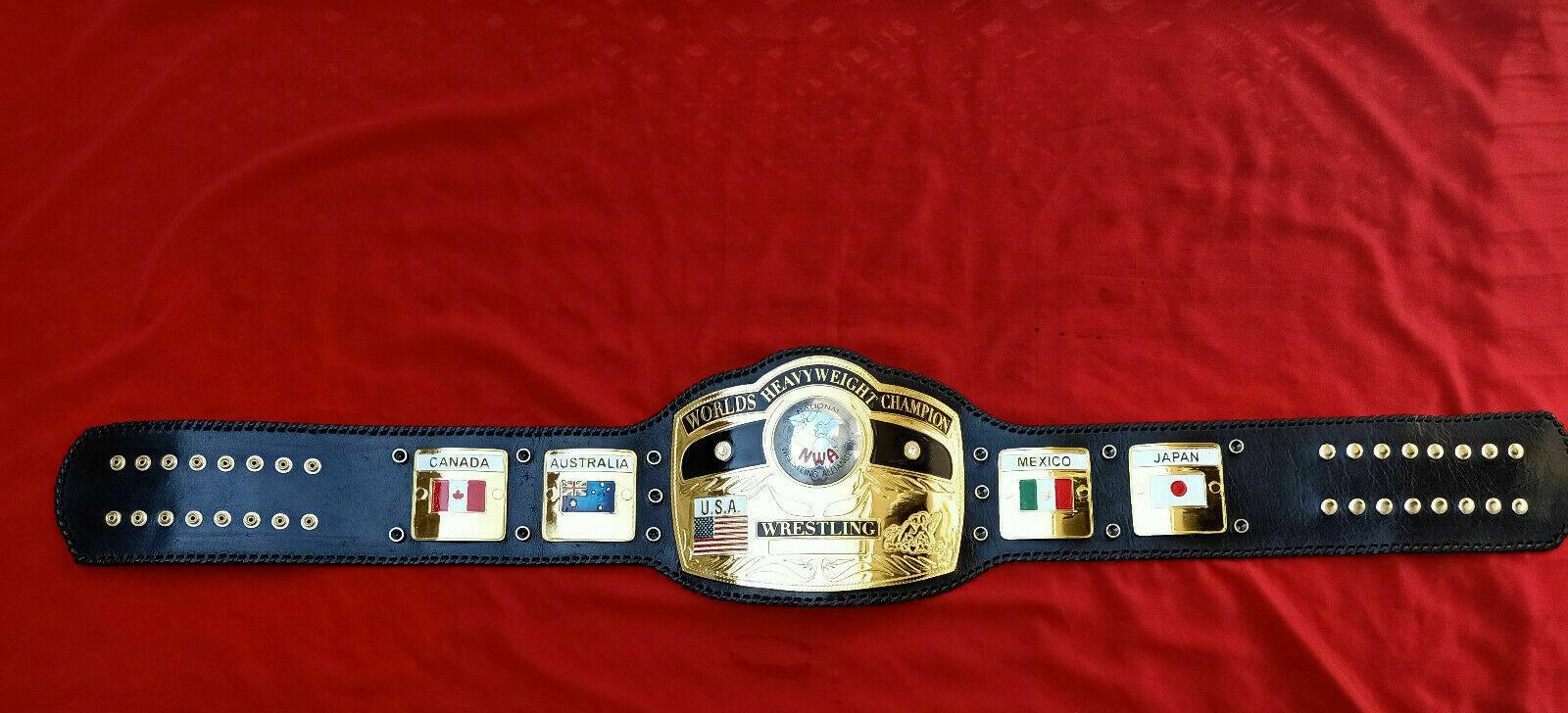 NWA Domed Globe Heavyweight is hand-crafted by professionals at Zees Belts. This prestigious NWA Domed Globe Heavyweight Championship Belt is made from Zinc metal with high-quality Gold plating. The straps of this beautiful Belt are made from Real Cowhide leather. The belt is available in plain and laced leather strapped. This belt is truly a masterpiece. You can customize this beauty on your demand.