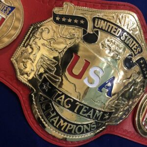 The NWA United States Tag Team is a piece of art. This belt is made with Zinc metal. 100% pure 24K Gold plating is done on the NWA United States Tag Team 24K Gold Zinc Championship Belt plates. Genuine Cowhide leather is used to make the straps of this championship belt. This belt can fit waist sizes up to 46 inches. The NWA United States Tag Team Championship Belt is available with laced and plain straps, depending on the customer’s choice. Customization can be done on the belt.