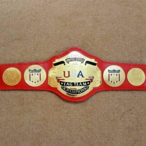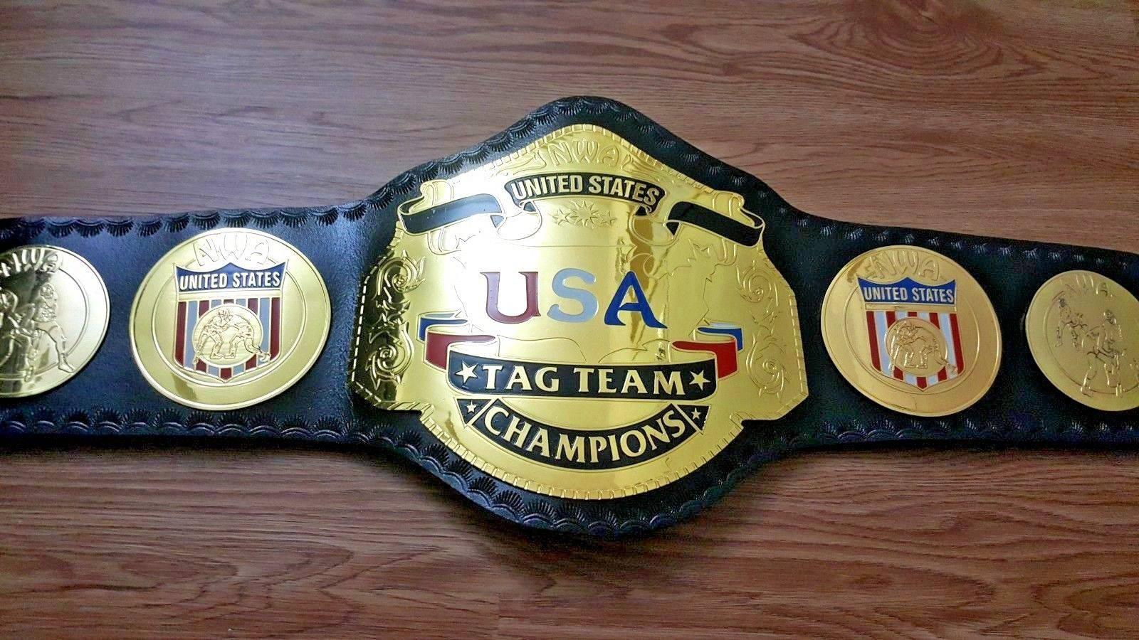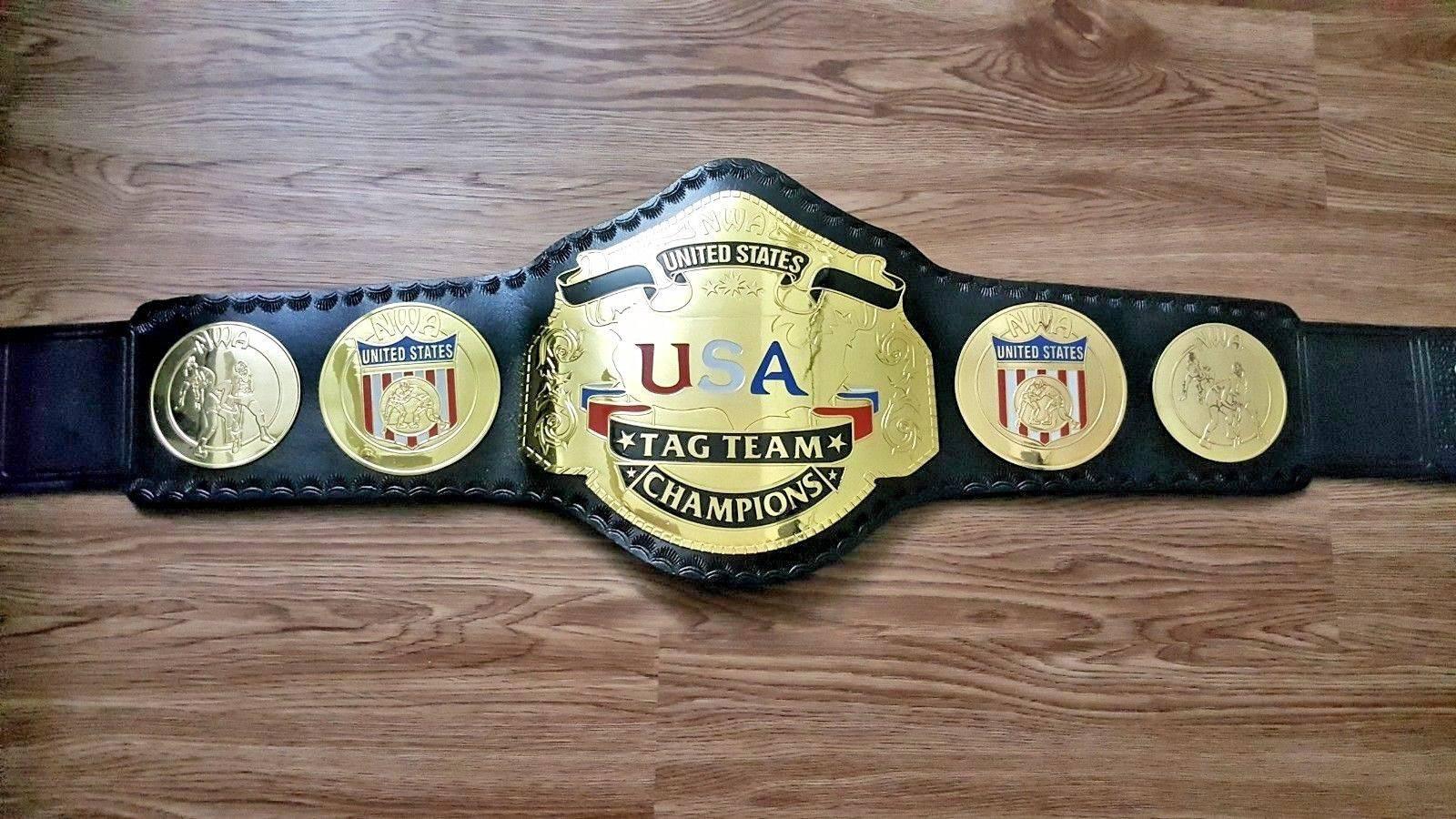 THE NWA US Tag Team is made with pure brass metal. Brass plates are deeply etched. This Championship belt is made by skilled craftsmen working at Zees Belts. The plates used in making NWA US Tag Team Championship belts are gold polished, and high-quality paint work is done on the plates. Real cowhide leather is used to make the straps of this championship belt. The straps of this championship belt are available in Red and Black colors. THE NWA US Tag Team Championship belt is available at Zees Belts. Order your championship belt now.