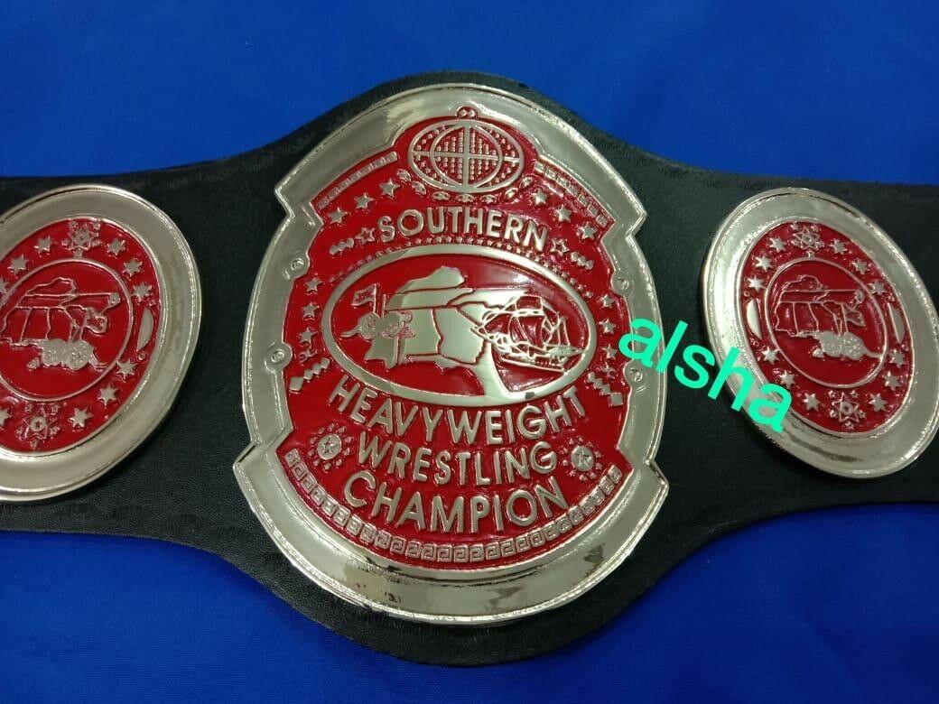 The Southern Heavyweight Championship was a professional wrestling title in the Continental Wrestling Association in the 1970s. It is a tremendous old-school belt. This championship belt is made SOUTHERN HEAVYWEIGHT Zinc Metal Championship Belt from zinc metal. Deep etching is done on the plates by professionals working at Zees Belts. The finest quality paintwork is done on the plates of this championship belt. The straps of this championship belt are made from real cowhide leather. This Championship belt can fit on waist sizes up to 46 inches. This belt is a gift for old-school Southern Heavyweight Championship lovers. So, What are you waiting for? Grab your Southern Heavyweight Championship belt now from Zees Belts.
