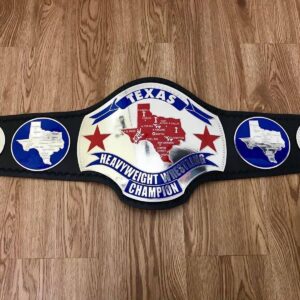 Texas Heavyweight Championship was first introduced in the 1930s. This Championship has had various names. The Texas Heavyweight Championship is one of the oldest championships. Brass metal plates are used in making the Texas Heavyweight Championship Belt. Real cowhide leather is used in making this . The leather straps are available in different variations, either laced or plain. The metal plates of Texas Heavyweight Championship belt have high-quality paintwork done on them. The Belt is customizable on customers demand. So what are you waiting for? Order your Texas Heavyweight Championship Belt now from Zees Belts.