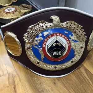 WBO Boxing Championship was introduced in 1988, But it was fully recognized in 2004. Janibek Alimkhanuly is the current champion of the WBO Boxing Championship. The WBO Boxing Championship belt is made of brass metal. Real cowhide leather is used to make WBO Boxing Championship Title Belt the WBO Boxing Championship Belt straps. This championship belt is handcrafted, and high-quality paint work is done on the metal plates of the WBO Championship belt. This can fit on waist size up to 46 inches. WBO Boxing Championship belt can be customized on customers demand. Order your WBO Boxing Championship Belt now from Zees Belts.