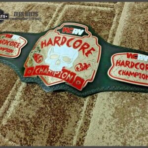 WCPW Hardcore Championship was a professional wrestling championship promoted by What Culture Pro Wrestling. The final Champion wrestler of the WCPW Hardcore Championship was Primate. WCPW Hardcore Championship was rebranded as the Defiant Hardcore Championship. The WCPW Hardcore is made with Brass metal. The paintwork on the WCPW Hardcore championship belt’s plates is fantastic. Real cowhide leather is used to make the WCPW Hardcore championship belt straps. This Championship is the one you can’t take your eyes off. Order your WCPW Hardcore Championship belt now from Zees Belts.