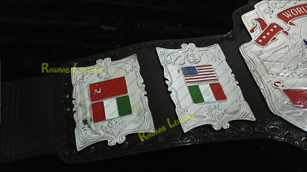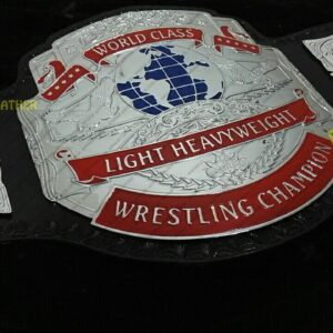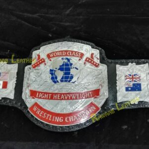 The WCWA Light Heavyweight Championship was a professional championship promoted by the Dallas Fort Worth metroplex area-based World Class Wrestling Association (WCWA) promotions. This Championship belt is made with pure zinc metal. WCWA LIGHT HEAVYWEIGHT Zinc Championship Belt The paintwork on the metal plates is beautifully done. The championship belt is nickel-polished. Real cowhide leather is used to make the straps of this beauty. This is a hand-crafted masterpiece, and the leather is stitched by hand. This championship belt is customizable. Order now from Zees Belts.