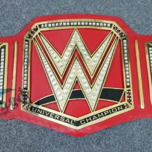 WWE UNIVERSAL Championship Title Belt comes in a red strap and is customizable in color and metal plates. This specific championship belt is made of thick brass metal plates. Superb quality gold plating is used for the metal plates, and a real cowhide leather strap in red is used for this championship belt. Add this beautiful to your title belt collection today.