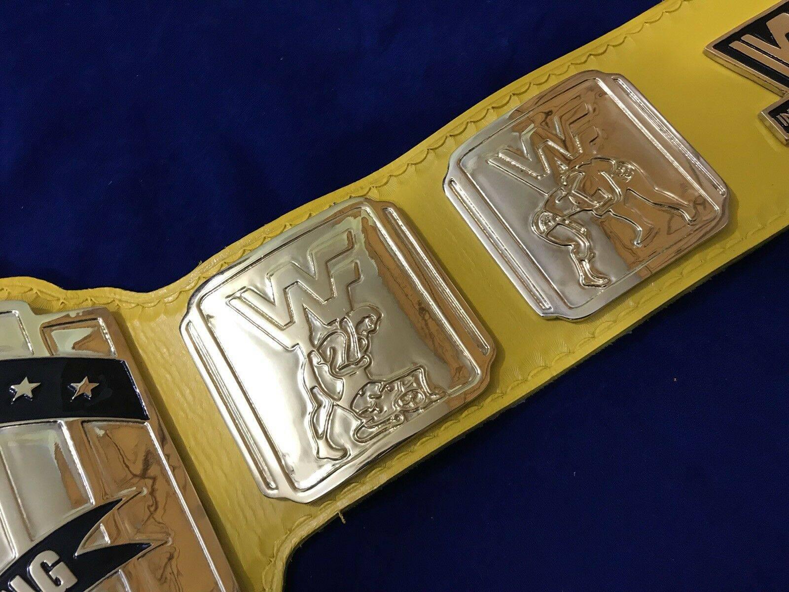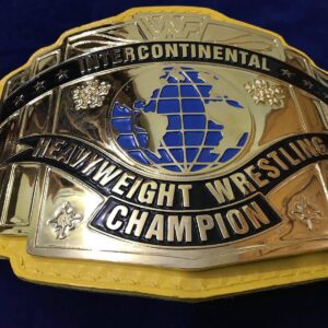 WWF INTERCONTINENTAL YELLOW 24K GOLD Championship Title Belt is available here on Zees Belts. This comprises 4mm thick zinc metal plates and real cowhide leather. 24K Gold plating is used for this championship title belt. This title belt is WWF INTERCONTINENTAL YELLOW 24K GOLD Zinc Championship Title Belt customizable. This title belt must be added to your title belt collection. What are you waiting for, WWF INTERCONTINENTAL YELLOW 24K GOLD Zinc Championship Title Belt then? Time and tide wait for no one. Grab your WWF INTERCONTINENTAL YELLOW 24K GOLD Championship Title Belt today at Zees Belts.