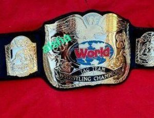 The belt is handcrafted by our skilled craftsmen using quality materials. The plates are made in zinc with high quality gold plating. 4mm Zinc Plates have deep etching and extremely excellent finished quality. WWF WORLD TAG TEAM DUAL PLATED Zinc We use finest vege-tanned top grain soft leather strap with excellent hand tooling on it. The plates are then curved and gold polished. Finest quality paint work on plates is done by skilled painters.