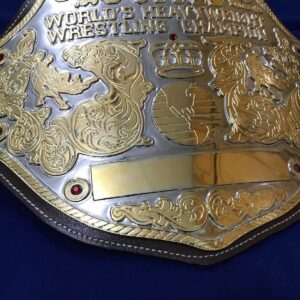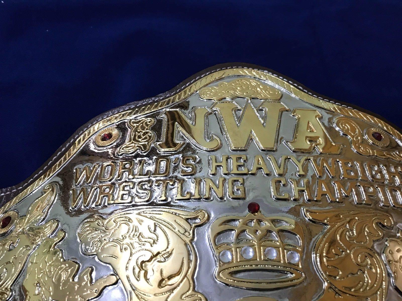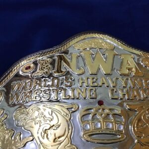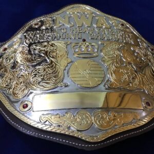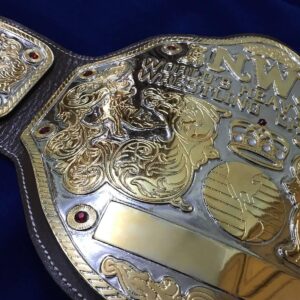 The NWA BIG GOLD 24K GOLD Zinc Championship Belt is available at Zees Belts and makes a great statement piece of any champion’s collection.