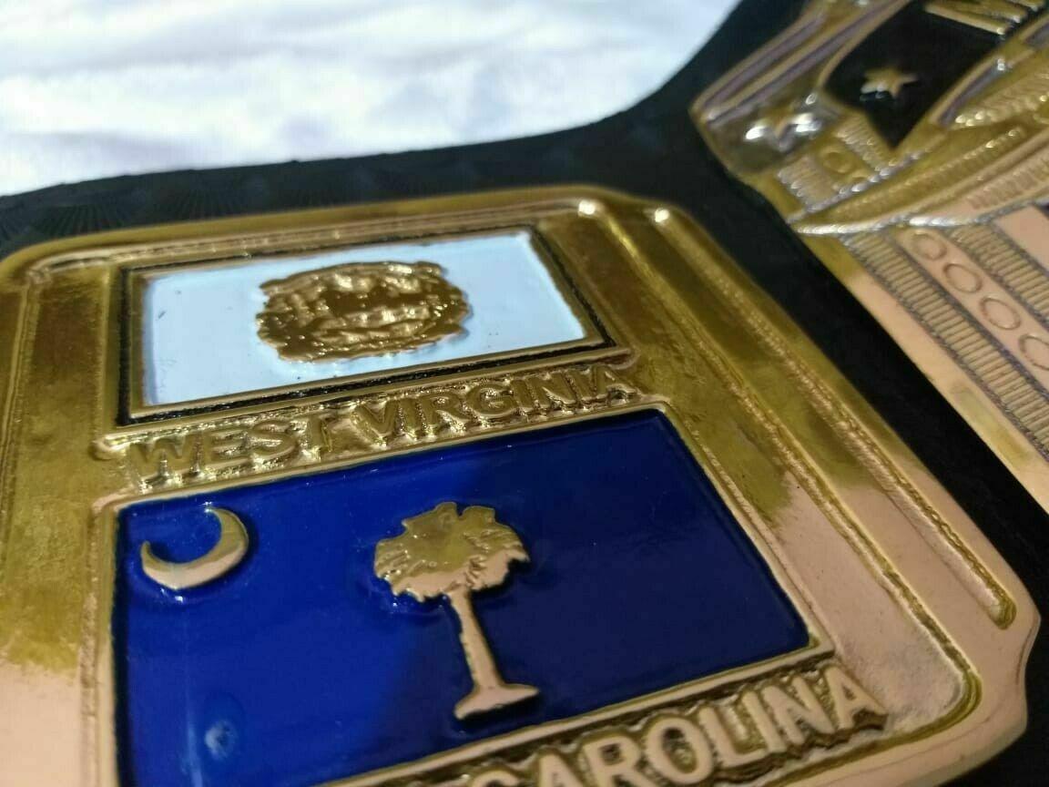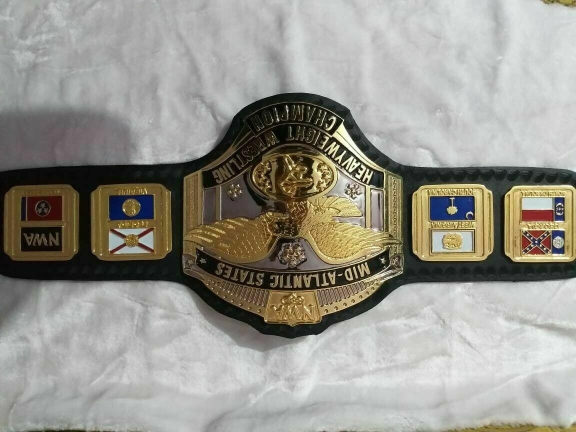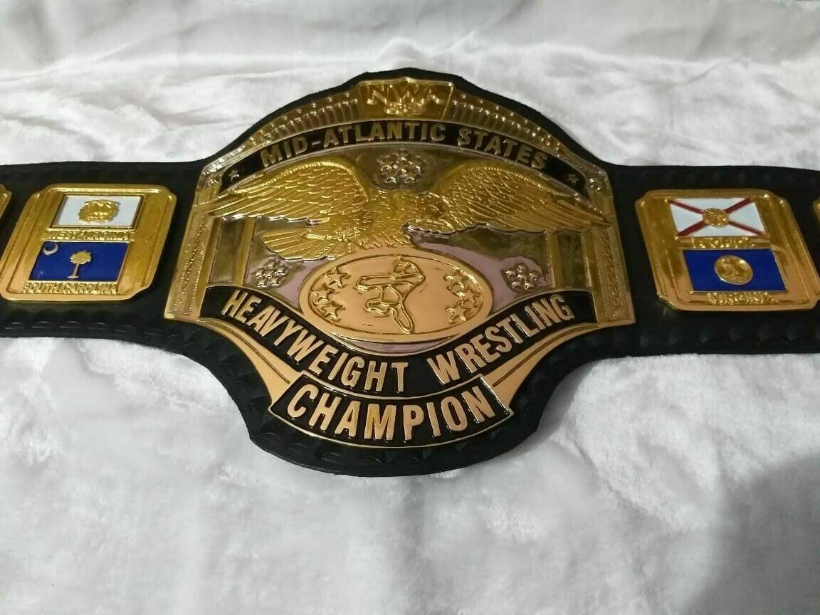 Jim Crocket promoted NWA Mid-Atlantic States. NWA Mid-Atlantic States Championship was introduced as a replacement for NWA Eastern States Heavyweight Championship in 1973. Jerry Brisco was the first wrestler to hold the NWA Mid-Atlantic Heavyweight Championship title. This beast is made with Zinc metal by skilled craftsmen at Zees Belts. NWA MID ATLANTIC STATES CHAMPIONSHIP Belt is made from Real Cowhide leather. NWA MID-ATLANTIC STATES Zinc Championship Belt When you hold this belt, you will feel like the NWA MID ATLANTIC Champion. So what are you waiting for? Are you a champion? This Belt will make your dream come true.