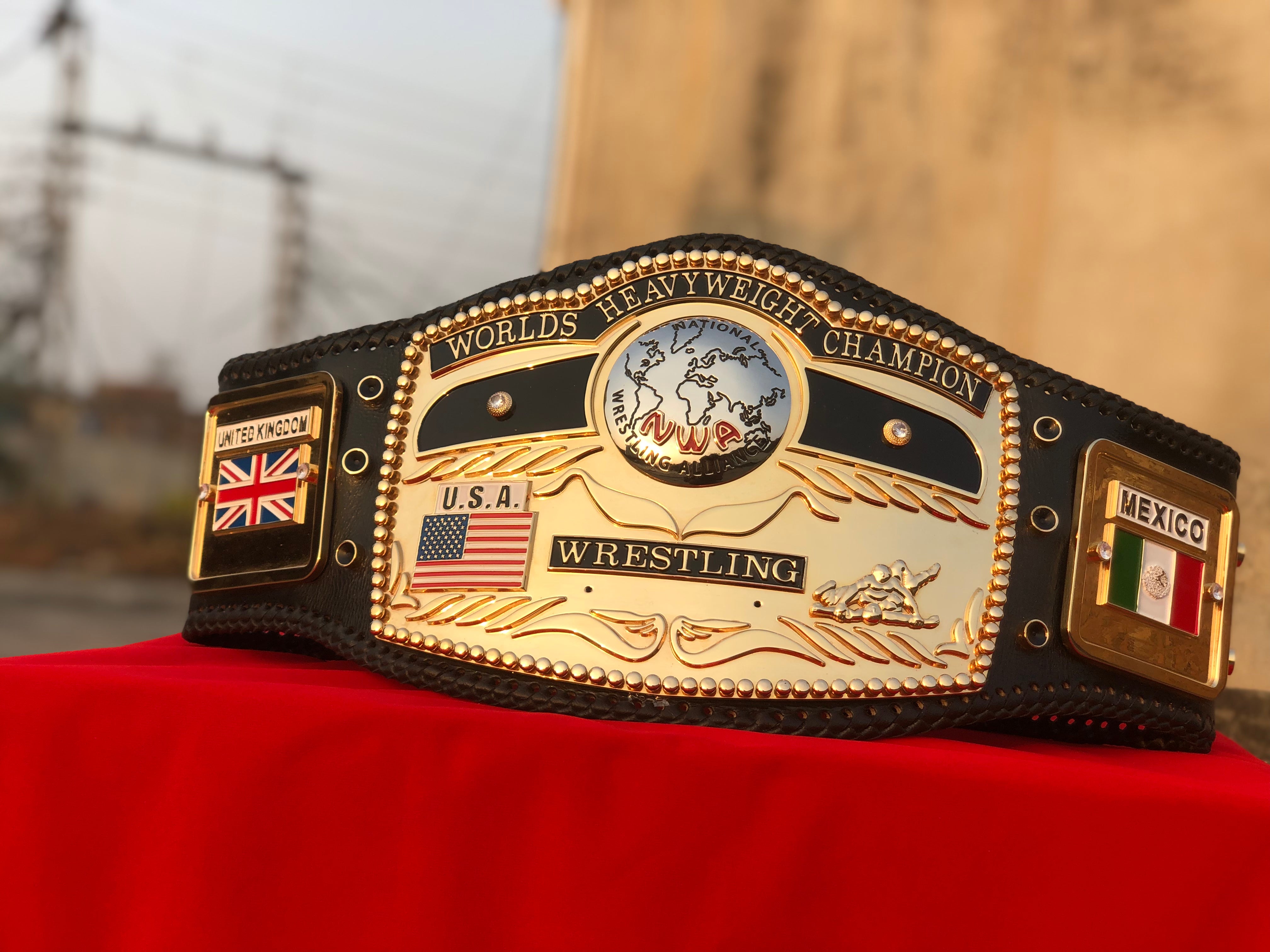 The NWA Premium Domed Globe CNC is a top-tier wrestling collectible. With intricate CNC engraving, high-quality materials, and a classic NWA domed globe design, this championship belt symbolizes wrestling excellence and history. Perfect for collectors and fans, it’s a must-have addition to any wrestling memorabilia collection. This NWA belt’s superior craftsmanship and iconic design make it a standout piece for showcasing wrestling pride and legacy.