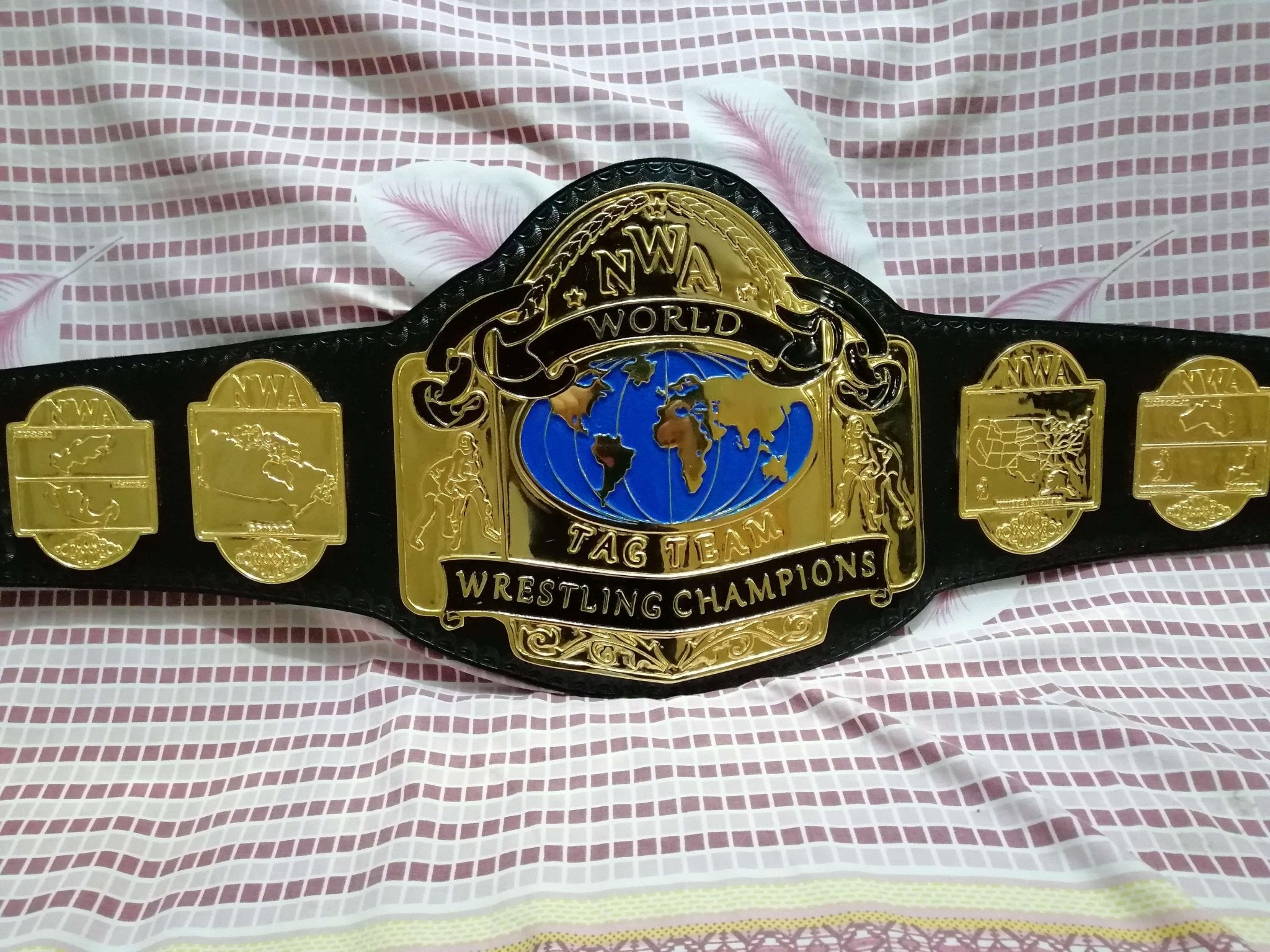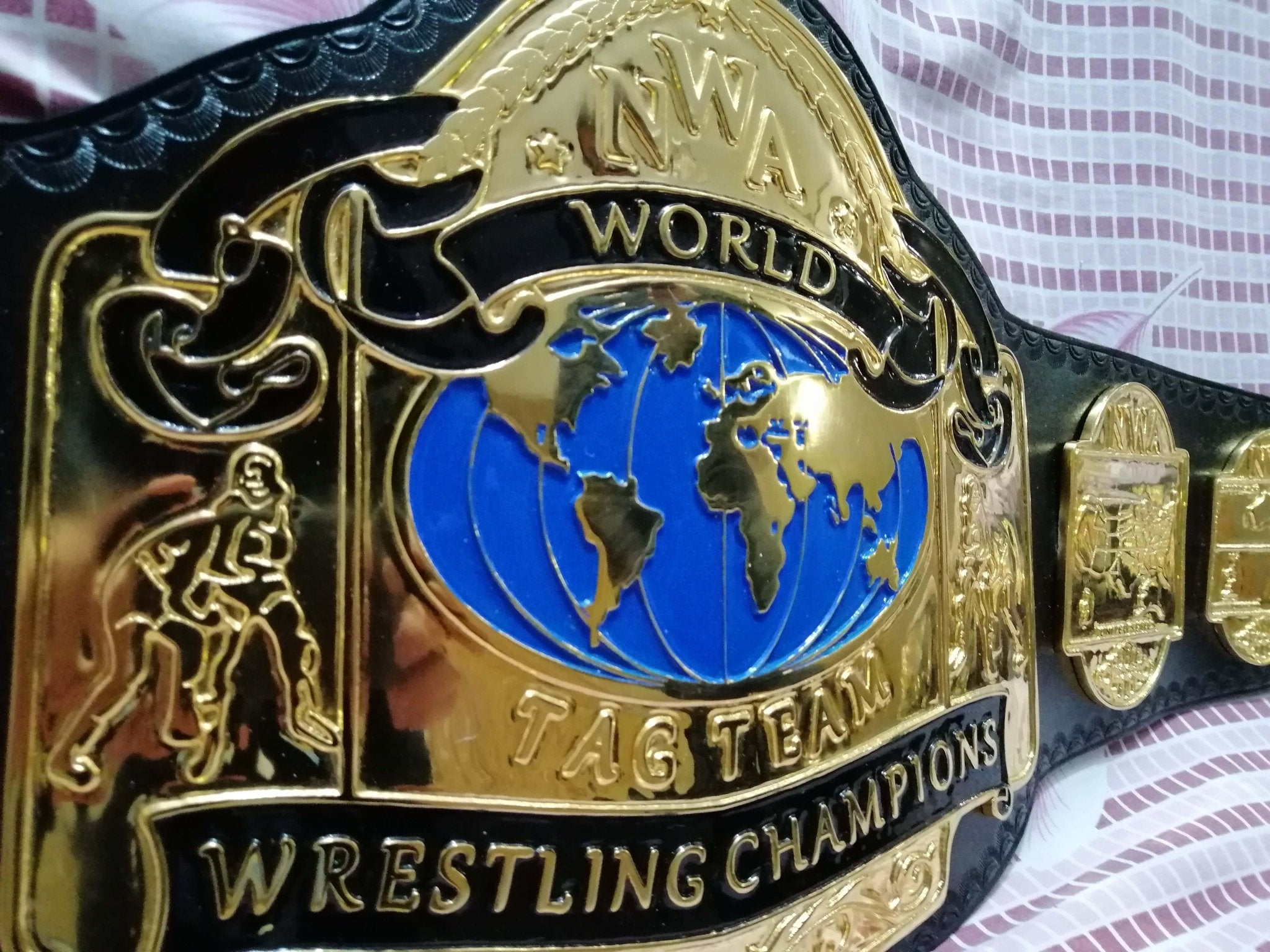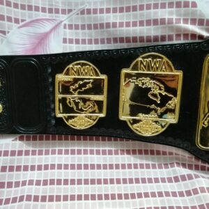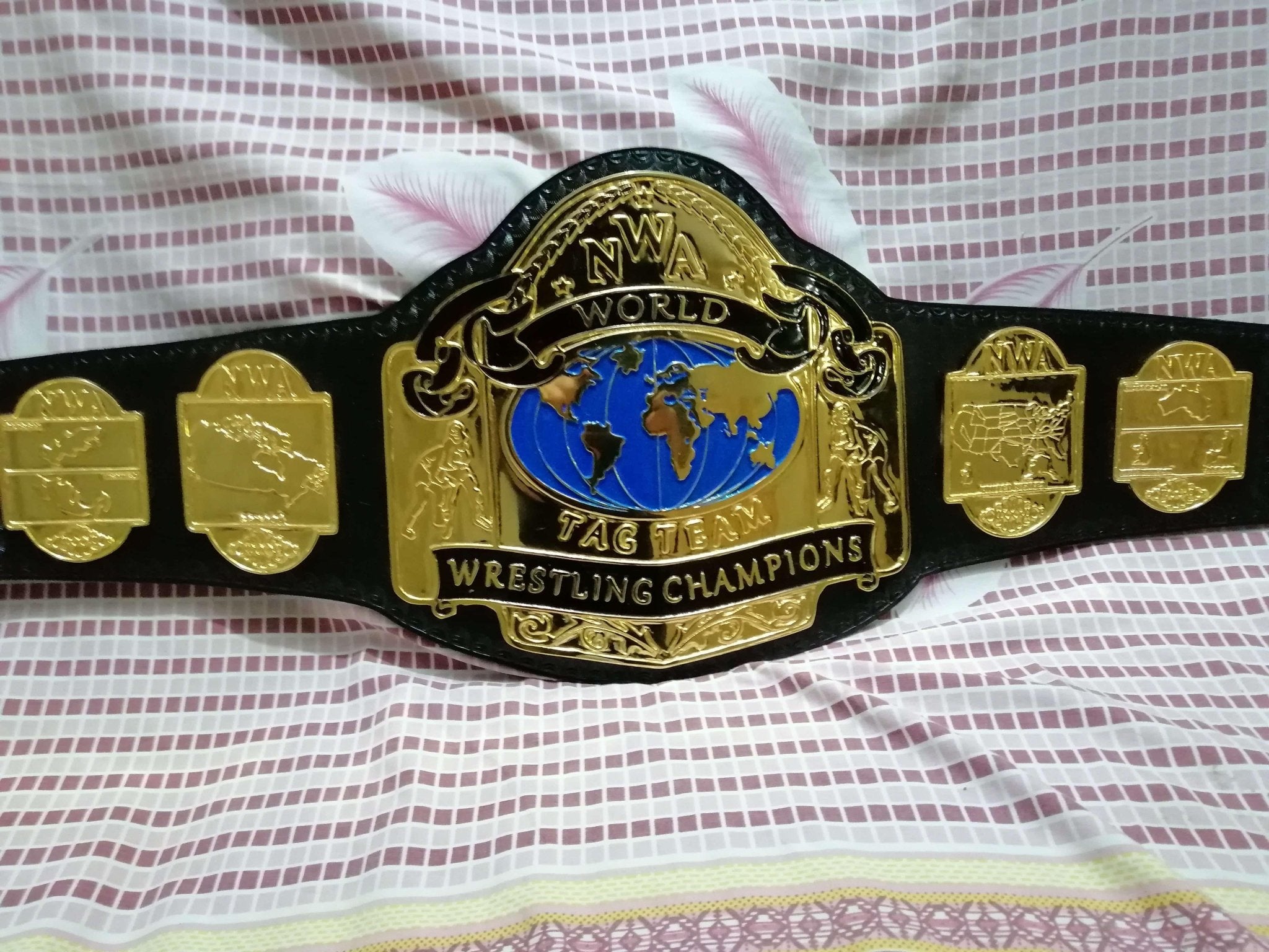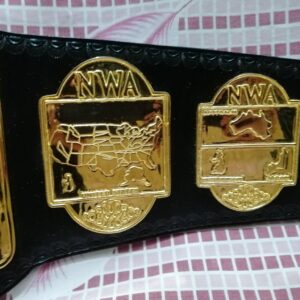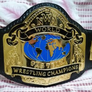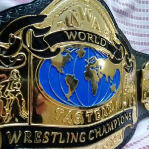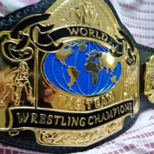 NWA World Tag Team Championship belt is made with Zinc metal. The Championship belt is 24K Gold plated. The plates are deep etched and then curved by skilled craftsmen at Zees Belts. High quality paint work is done on the plates. Real Cowhide leather is used to make the straps of NWA World tag team . NWA WORLD TAG TEAM 24K GOLD Zinc Wrestling Championship Belt Straps are available in two different colors i.e. Red and Black. Customers can order this championship belt with plain leather straps or laced leather straps. Customization can be done on buyers demand. So order your Championship Belt now from Zees Belts.