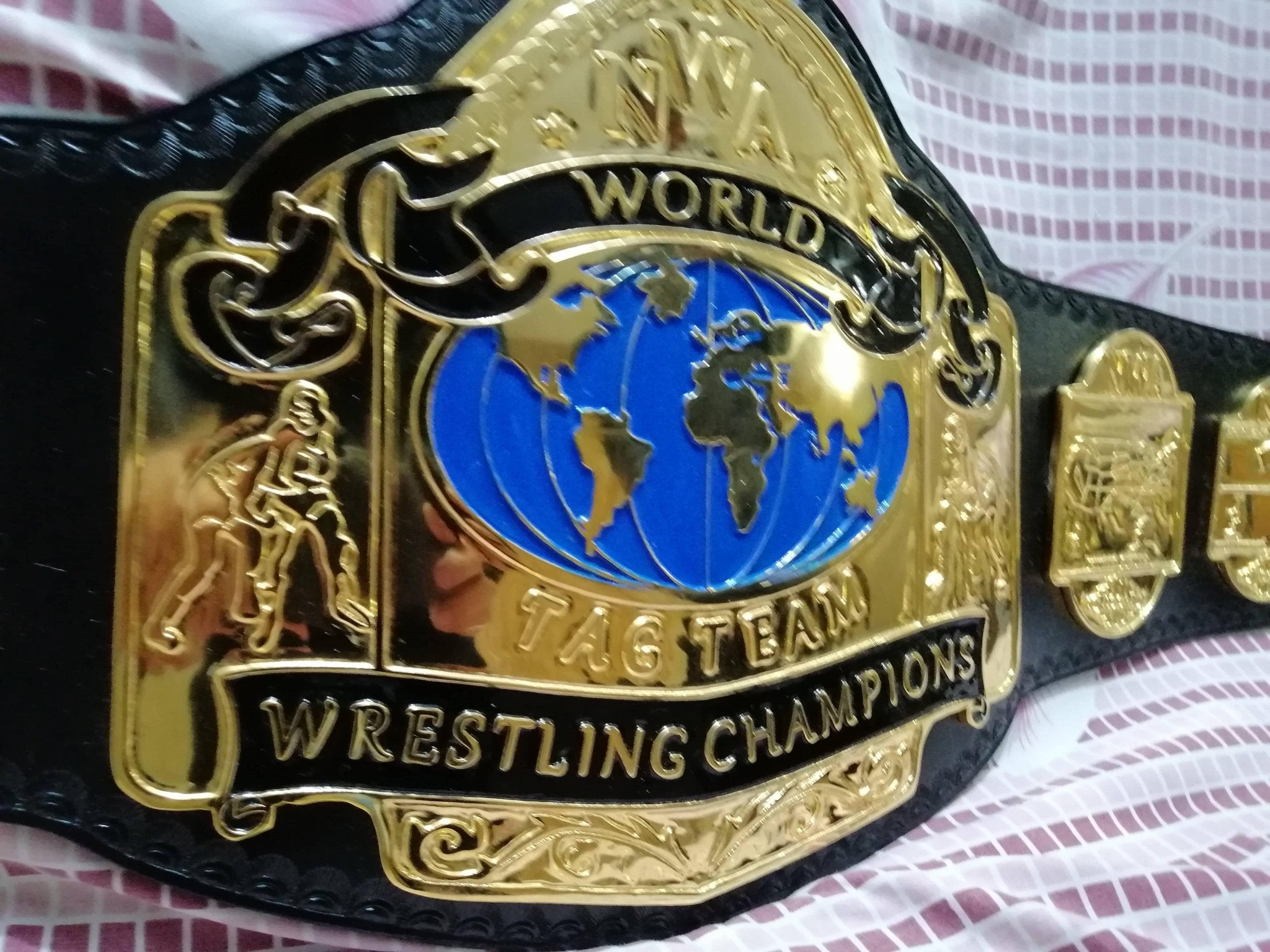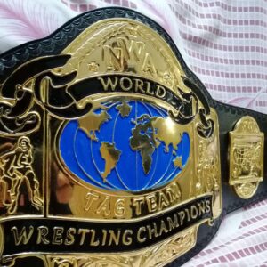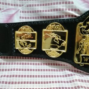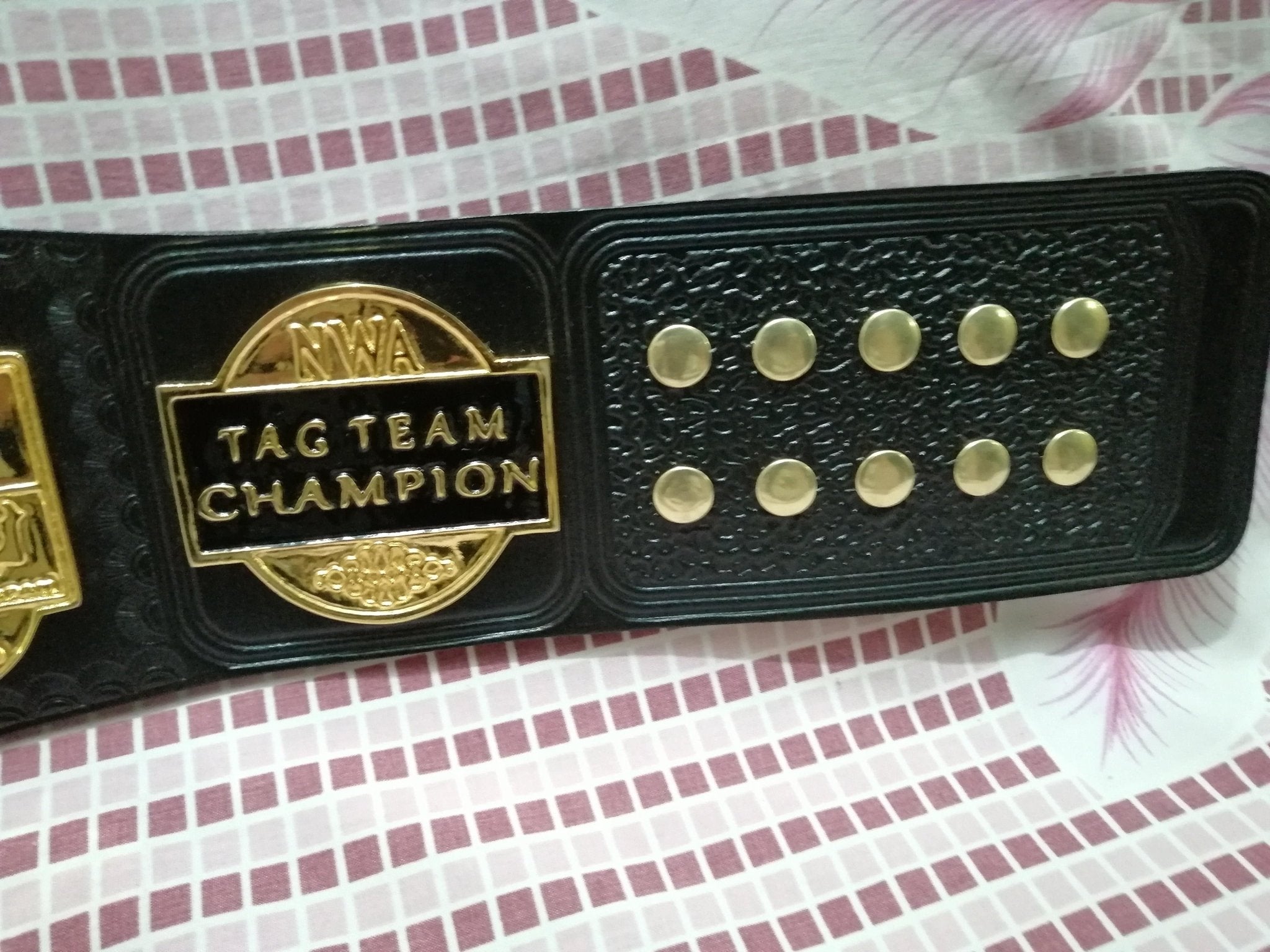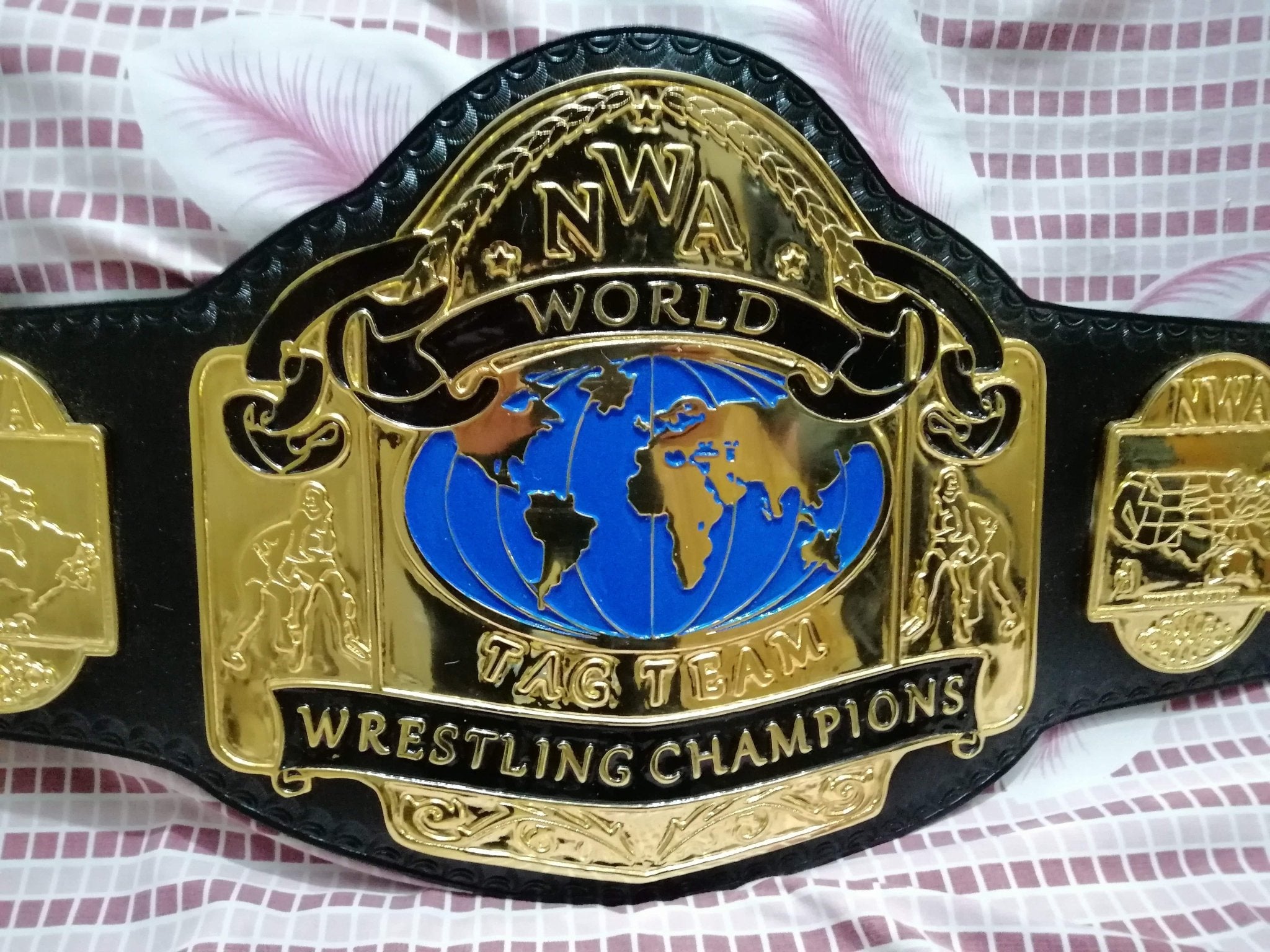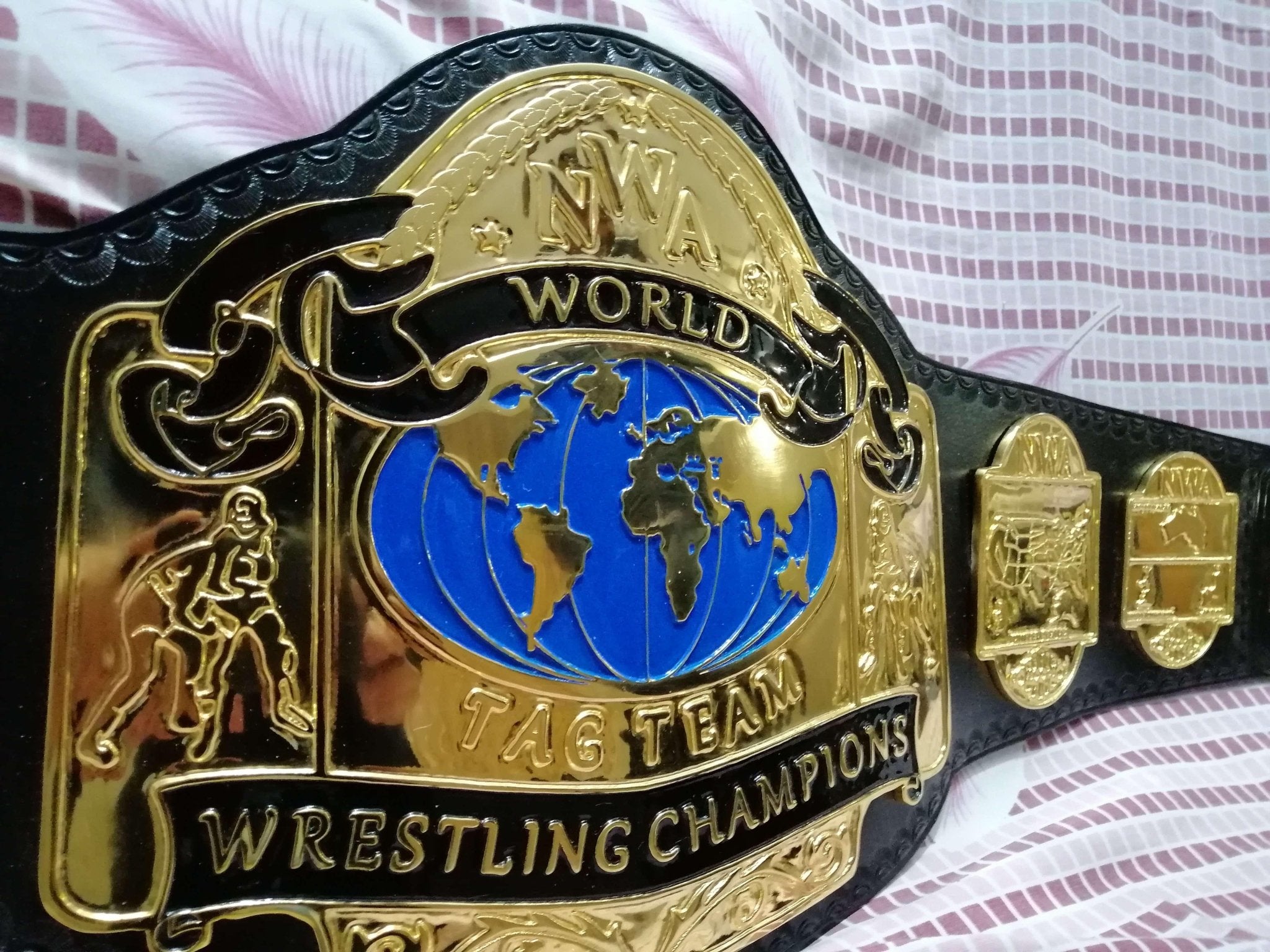 NWA World Tag Team Championship belt is made with Zinc metal. The Championship belt is 24K Gold plated. The plates are deep etched and then curved by skilled craftsmen at Zees Belts. High quality paint work is done on the plates. Real Cowhide leather is used to make the straps of NWA World tag team . NWA WORLD TAG TEAM 24K GOLD Zinc Wrestling Championship Belt Straps are available in two different colors i.e. Red and Black. Customers can order this championship belt with plain leather straps or laced leather straps. Customization can be done on buyers demand. So order your Championship Belt now from Zees Belts.