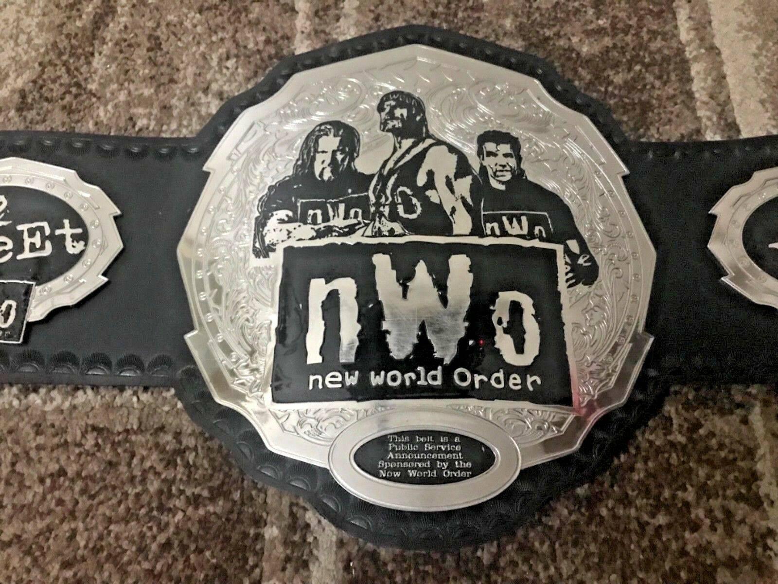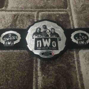 NEW WORLD ORDER is a professional wrestling stable featuring Hulk Hogan, Kevin Nash, and Razor Ramon. The NWO lt is the proud symbol of the wrestling stable these 3 wrestling legends maintained. This championship belt is made of thick brass metal plates and is strapped with genuine cowhide leather. This Championship Belt has a color scheme of silver and black giving it a fantastic classic wrestling look. This belt is heavy, and nickel plating NWO NEW WORLD ORDER Brass Championship Belt has been done on the plates. If you are a real NWO fan, don’t miss this championship belt, as other NWO fans are grabbing this beauty. Don’t miss the chance to be a part of NWO again! Grab your championship belt now and be the champ.