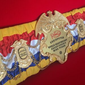 Ring Magazine Undisputed Championship belt is a masterpiece. This Championship is made with Brass. The Metal plates are gold polished and high-quality paint work is done on the metal plates. Hand-stitched real cowhide leather is used to make the straps of this championship belt. This is eye-catching. The leather straps are available in different variations. The Belt is customizable. This belt is a gift for Ring Magazine Undisputed Boxing Championship. Are you a fan of Ring Magazine’s undisputed Boxing Championship? So, Order your Championship belt now from Zee’s belt.
