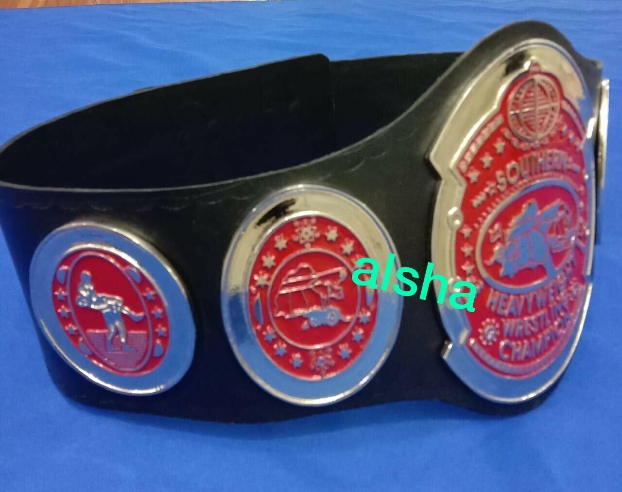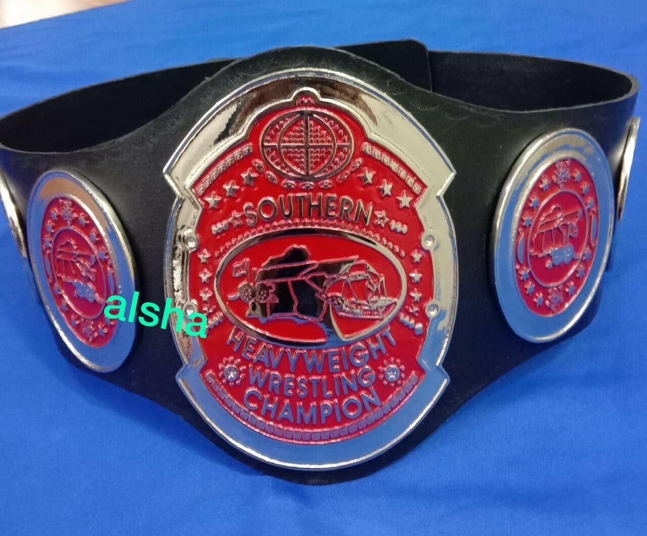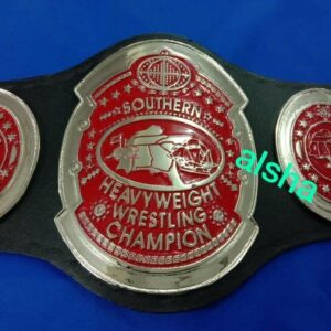 The Southern Heavyweight Championship was a professional wrestling title in the Continental Wrestling Association in the 1970s. It is a tremendous old-school belt. This championship belt is made SOUTHERN HEAVYWEIGHT Zinc Metal Championship Belt from zinc metal. Deep etching is done on the plates by professionals working at Zees Belts. The finest quality paintwork is done on the plates of this championship belt. The straps of this championship belt are made from real cowhide leather. This Championship belt can fit on waist sizes up to 46 inches. This belt is a gift for old-school Southern Heavyweight Championship lovers. So, What are you waiting for? Grab your Southern Heavyweight Championship belt now from Zees Belts.