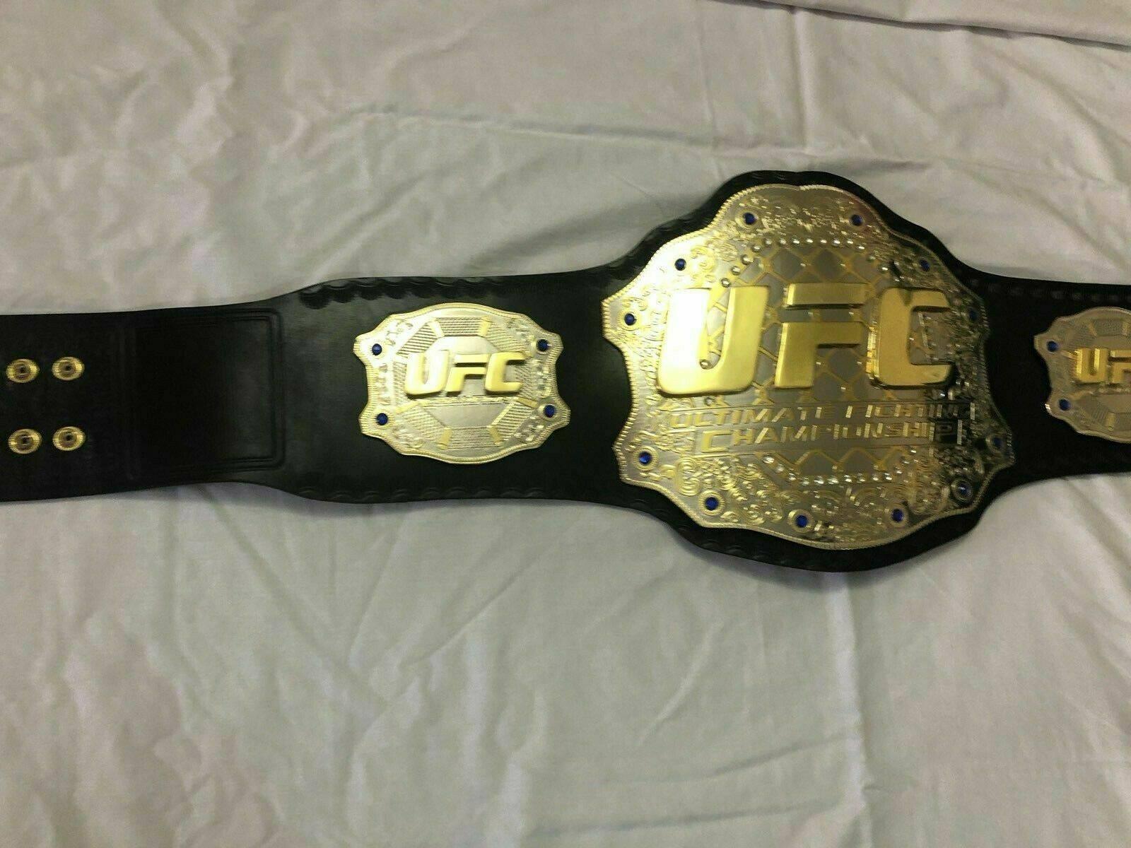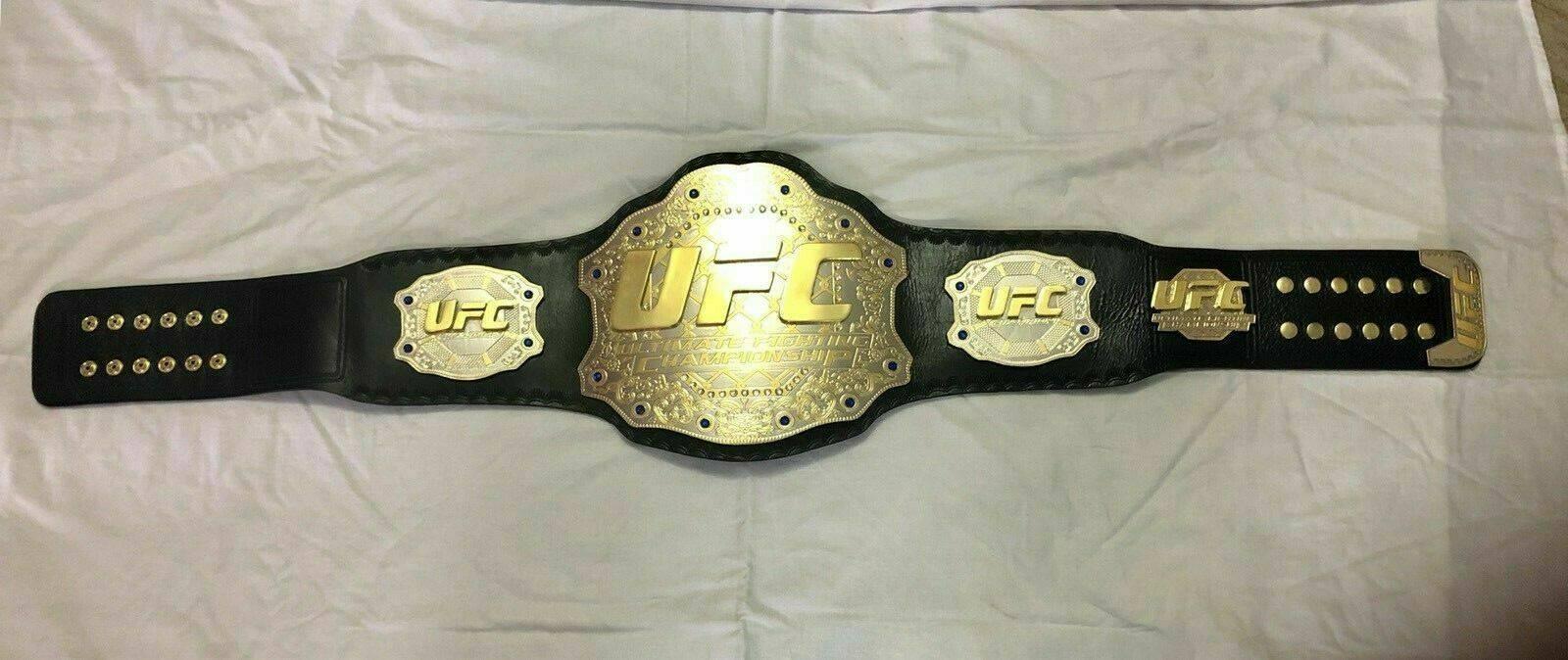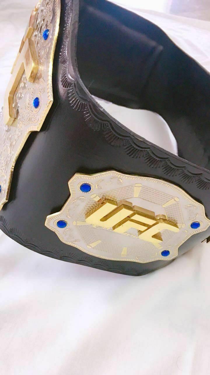Ultimate Fighting Championship (UFC) is a promotion company based in Las Vegas. Nevada. UFC promotes mixed martial arts. It was founded in 1993 as Mixed Martial Arts (MMA). This UFC Championship Belt is made from double-stacked brass plates. High-quality gold plating is done. The straps of the UFC are made from real cowhide leather. This Belt can fit waist sizes up to 46 inches. You can choose straps of your own choice, laced or plain. Customization can be done.