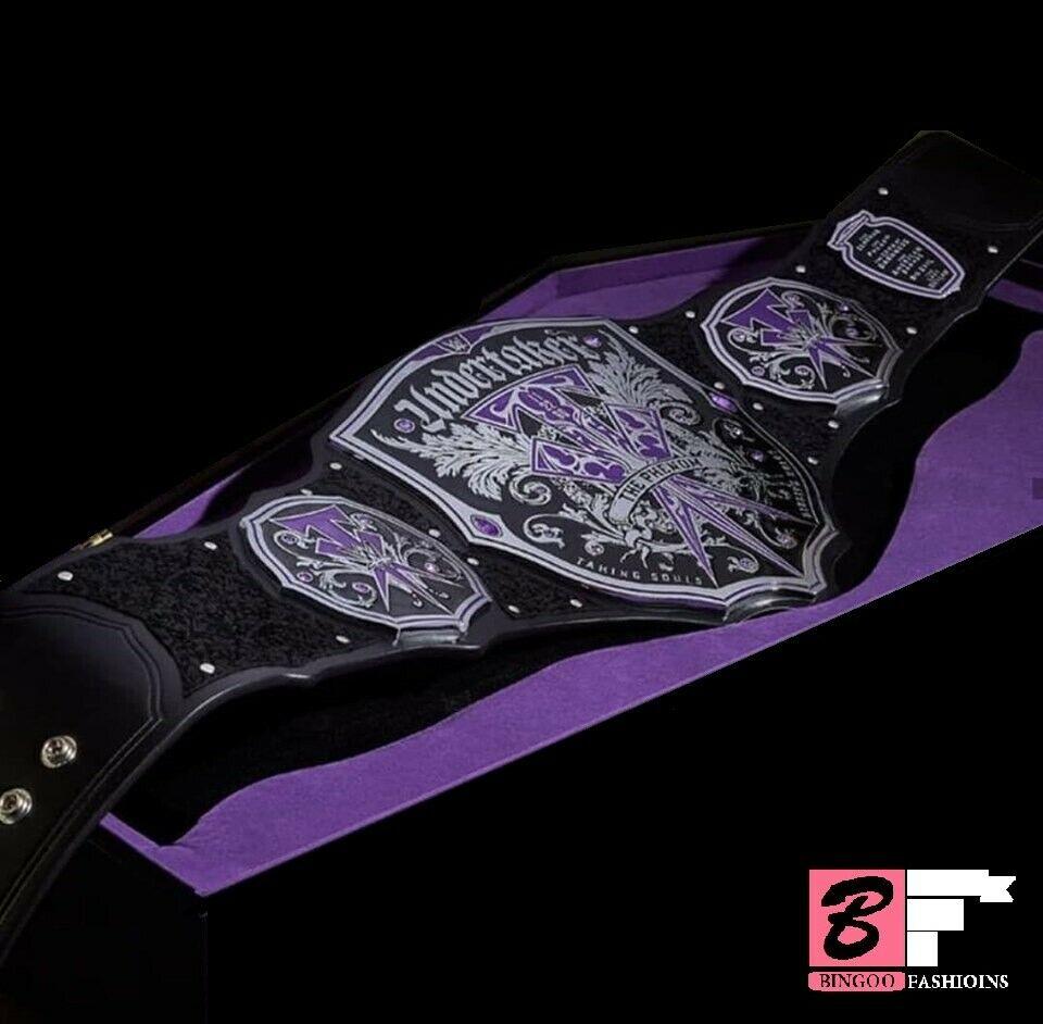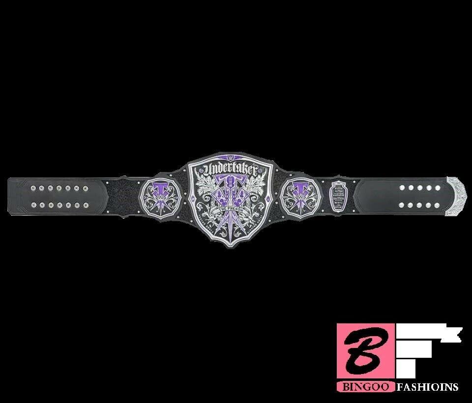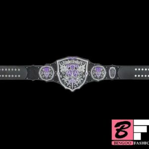 Undertaker, The Phenom Championship belt, is made with pure zinc metal. The metal plates are curved and have deep etching on them. Undertaker, The Phenom Championship Belt, is a piece of art hand-crafted by skilled craftsmen at Zees Belts. Real Cowhide leather is used to make the straps of this . This Championship is customizable to customers demands. The straps are available in different variations, either laced or plain. This championship belt is for Undertaker The Phenom Championship fans and lovers, a tribute to the wrestling world. You will love the supreme quality and design. Available at Zees Belts. Order yours now.