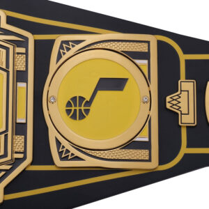 Feel the rhythm of the Vivint Arena with this Utah Jazz NBA Championship Belt. The iconic mountain note logo, set against a backdrop of navy, gold, and green, captures the team’s harmonious spirit and the unwavering loyalty of its fans. This Championship Belt is more than just a symbol of victory; it’s a tangible connection to the Jazz’s legacy, a reminder of the electrifying atmosphere in Salt Lake City, and a testament to the belief in a future filled with championship glory.
