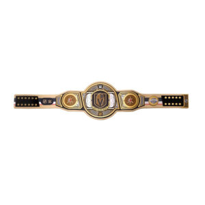 Conquer the desert with this Vegas Golden Knights NHL Championship Belt. The bold knight’s helmet logo and striking steel grey, gold, and red colors embody the team’s relentless spirit and the unwavering dedication of its fans. This Championship Belt isn’t just an accessory; it’s a symbol of your loyalty to the Golden Knights, a reminder of the electrifying atmosphere at T-Mobile Arena, and a celebration of the hockey fever that has taken over Las Vegas.