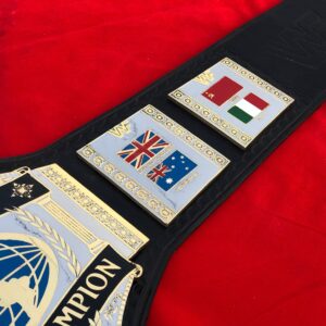WWF HULK HOGAN 86 Brass Championship Title Belt is available here on Zees Belts. This comprises 4mm thick brass metal plates and real cowhide leather. Top Quality gold plating is used for this championship title belt. This title belt is customizable. This title belt must be added to your title belt collection. What are you waiting for, then? Time and tide wait for no one. Grab your WWF HULK HOGAN 86 BRASS Championship Title Belt today at Zees Belts.