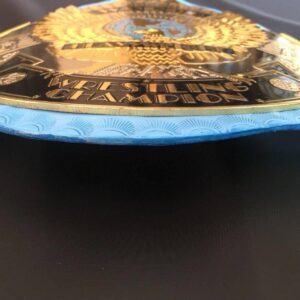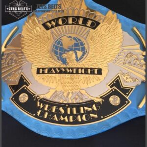 WWF WINGED EAGLE BLUE Brass Championship Title Belt is available here on Zees Belts. This comprises 4mm thick brass metal plates and real cowhide leather. Top Quality gold plating is used for this championship title belt. This title belt is customizable. This title belt must be added to your title belt collection. What are you waiting for, then? Time and tide wait for no one. Grab your WWF WINGED EAGLE BLUE Championship Title Belt today at Zees Belts.