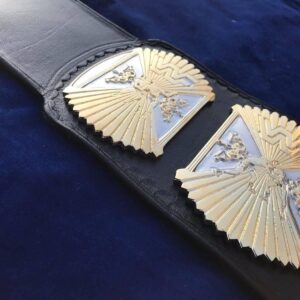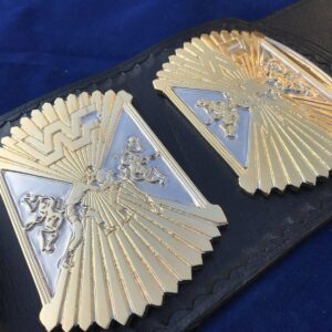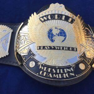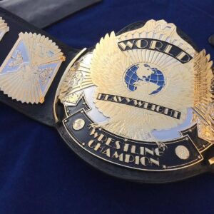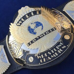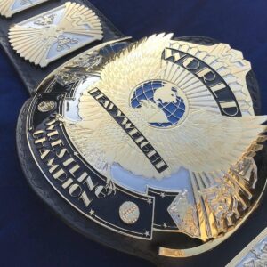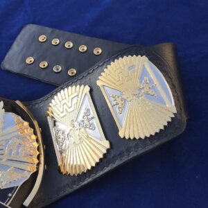 WWF WINGED EAGLE DUAL PLATED 24K GOLD Championship Title Belt The belt is handcrafted by our skilled craftsmen using quality materials . The plates are made in zinc with original 100% 24k gold plating. WWF WINGED EAGLE DUAL PLATED 24K GOLD Zinc 4mm Zinc Plates have deep etching and extremely excellent finished quality. We use finest vege-tanned top grain soft leather strap with excellent hand tooling on it. WWF WINGED EAGLE DUAL PLATED 24K GOLD Zinc The plates are then curved and gold polished. Finest quality paint work on plates is done by skilled painters.