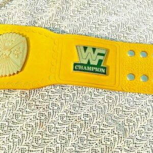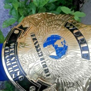 The belt is handcrafted by our skilled craftsmen using quality materials The plates are made in zinc with high quality gold plating. WWF WINGED EAGLE ULTIMATE WARRIOR Zinc Championship Belt. 4mm Zinc Plates have deep etching and extremely excellent finished quality. We use finest vege-tanned top grain soft leather strap with excellent hand tooling on it. The plates are then curved and gold polished. Finest quality paint work on plates is done by skilled painters.
