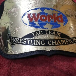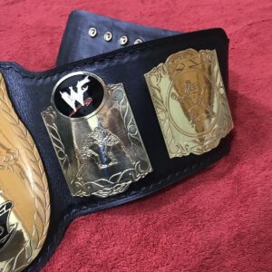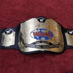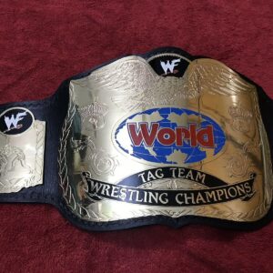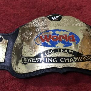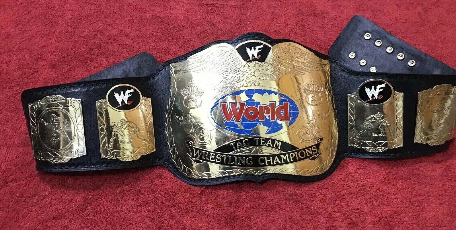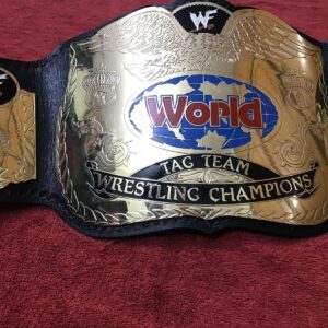 The belt is handcrafted by our skilled WWF WORLD TAG TEAM Brass Championship Replica Belt craftsmen using quality materials The plates are made in brass with high quality gold plating. 2mm brass Plates have good etching and WWF WORLD TAG TEAM Brass extremely excellent finished quality. We use finest vege-tanned top grain soft leather strap with excellent hand tooling on it. The plates are then curved and gold polished. Finest quality paint work on plates is done by skilled painters.