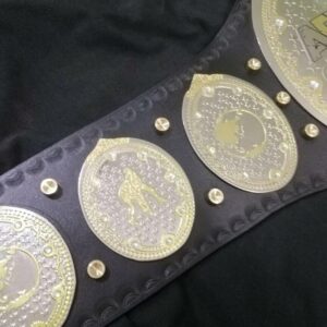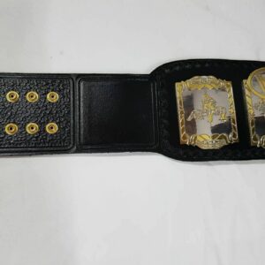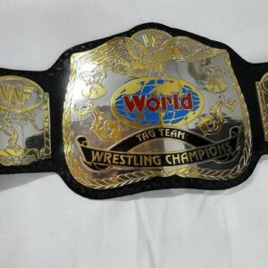 The belt is handcrafted by our skilled craftsmen using quality materials The plates are made in brass with high quality gold plating. 2mm brass Plates have WWF WORLD TAG TEAM DUAL PLATED Brass good etching and extremely excellent finished quality. We use finest vege-tanned top grain soft leather strap with excellent WWF WORLD TAG TEAM DUAL PLATED Brass Championship Belt hand tooling on it. The plates are then curved and gold polished. Finest quality paint work on plates is done by skilled painters.
